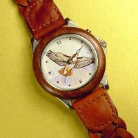 Gent's wooden watch with Eagle sound and leather strap. (also has different bird's sound for selection)