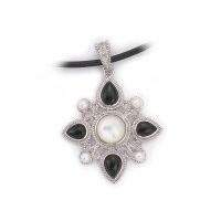 Enhancer with China pearl, onyx and diamond accent in sterling silver.