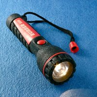 2 'D' cells plastic flashlight with string. 2 'AA' cells is also available.