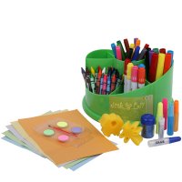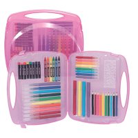12 fibre pens,8jumbo markers,24 crayons,4 neon glitter glue, 6 stamper marker, 1 glitter shaker, 1 glue,1 tube of glitter, 1paint brush, 4 ...