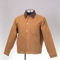 MEN'S CANVAS WORKWEAR TYPE OUTERWEAR WITH LEATHER TRIM