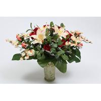 40cm Mixed Satin Easter Lily/Rose Bud/Sweet Pea/Foamed Gypsothilia Center-Piece X 31