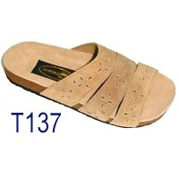 Sandals or casual shoes with leather or synthetic materials upper.